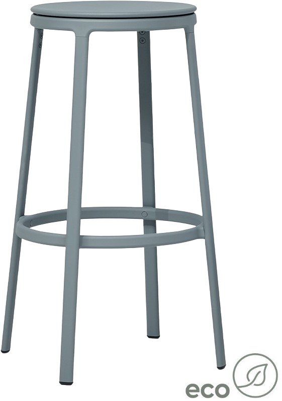 Deze ronde kruk met klassieke look heeft een vaste zitting die gemaakt is van 100% gerecycled kunststof. Het frame is van metaal en gepoedercoat.